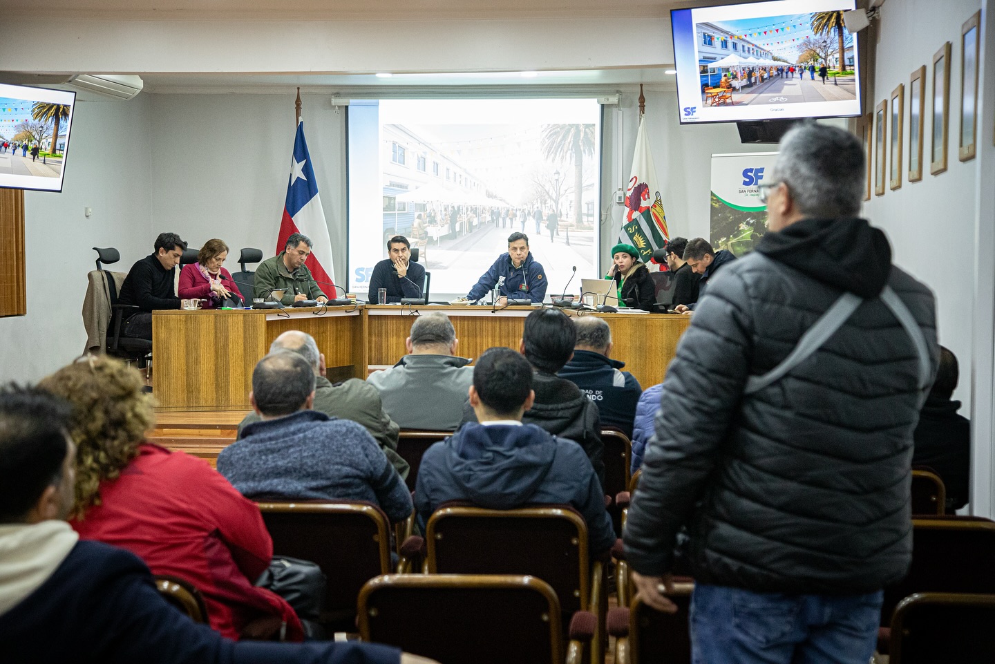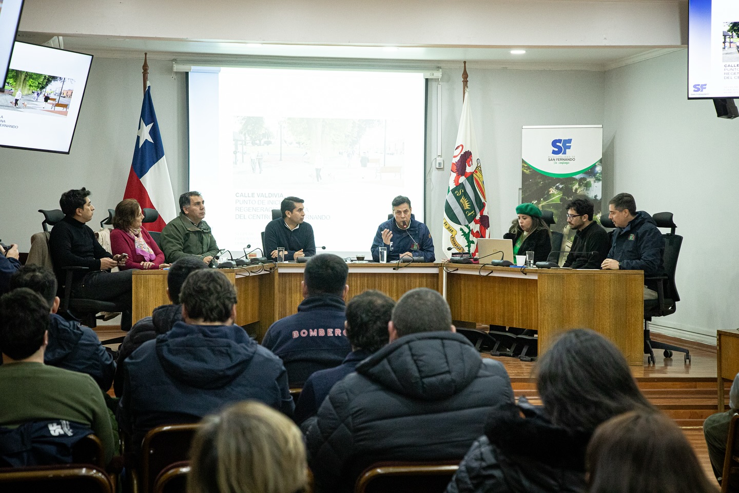 A la reunión asistieron representantes de los comerciantes del Barrio Valdivia, del gremio de los colectiveros, Bomberos, el Cosoc, juntas de vecinos del centro, además del consejero regional Alejandro Díaz Correa y los concejales Marta Cádiz, Juan Muñoz, Cristián Calderón y Paz Belén Rodríguez.