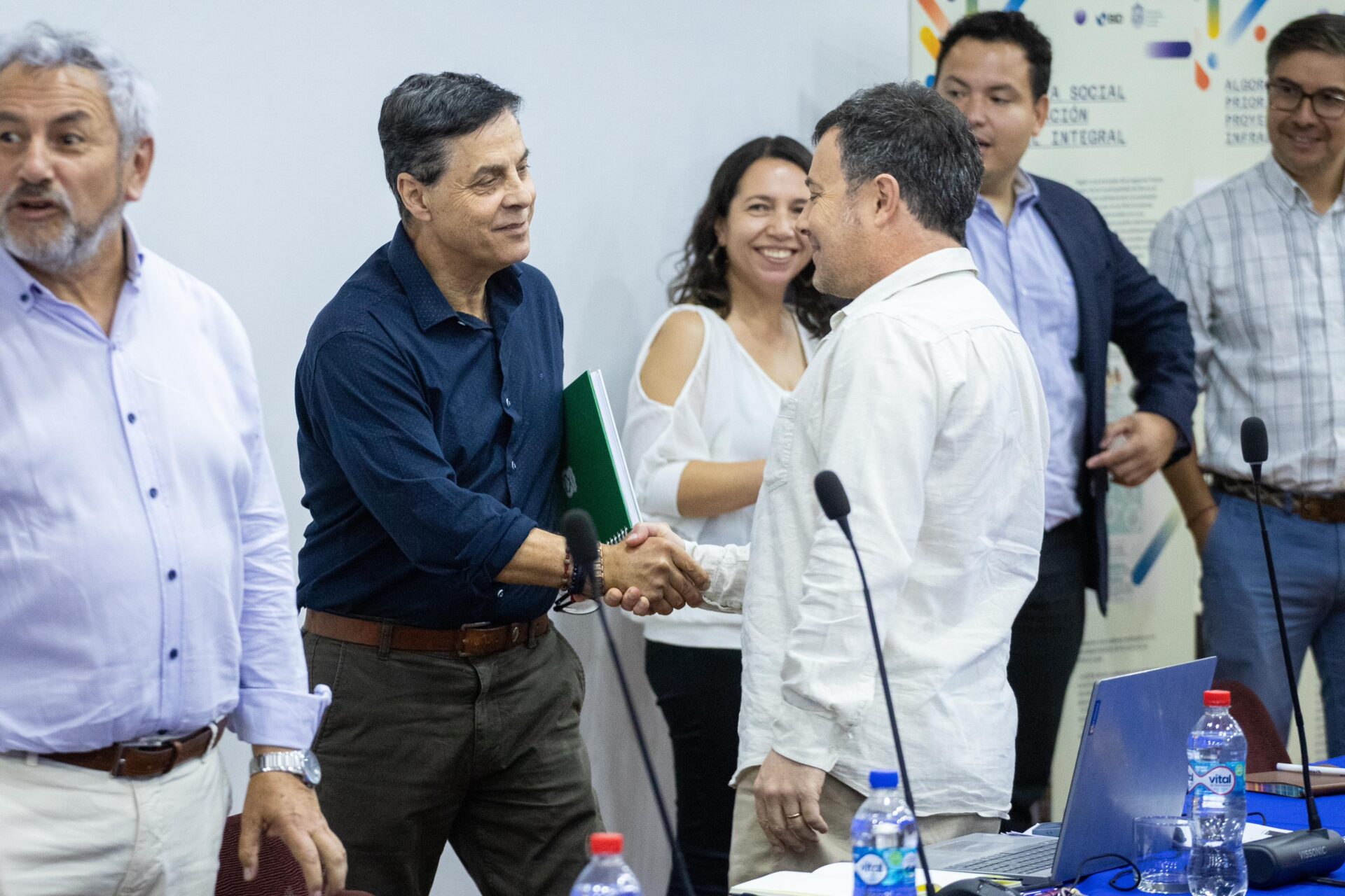 En la citada reunión participaron, además de los equipos técnicos de la Municipalidad, el seremi de Vivienda Luis Barboza; los diputados Eduardo Cornejo y Cosme Mellado; el concejal Cristián Calderón, los representantes de los vecinos Daniel Rojas y Rosa Gálvez y el representante de la entidad patrocinante Jorge Peñaloza.