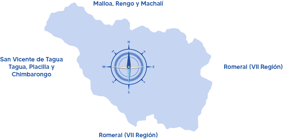 La comuna, capital de la Provincia de Colchagua, está ubicada a 132 kilómetros de Santiago y a 54 kilómetros de Rancagua. A 349 metros sobre el nivel del mar, tiene una superficie de 2.458 kilómetros cuadrados. Limita al Norte con las comunas de Malloa, Rengo y Machalí; al Sur con Chimbarongo y Teno; al Oriente con la República de Argentina y al Poniente con las comunas de Placilla y Nancagua.