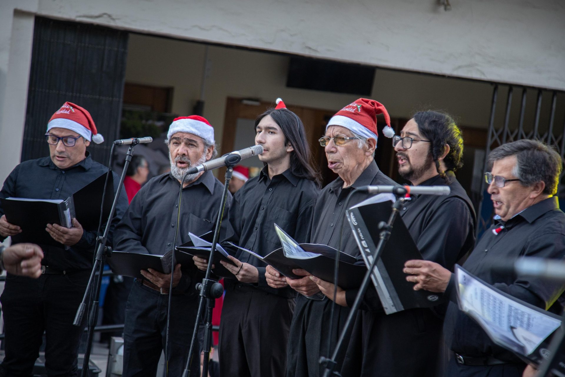La jornada comenzó con la presentación de villancicos a cargo de talleres culturales locales, que llenaron el ambiente de melodías tradicionales y ritmos contagiosos. La música en vivo se apoderó de cada rincón de la Plaza de Armas, deleitando a niños, jóvenes y adultos. Las luces, guirnaldas y adornos festivos aportaron un matiz especial a este icónico espacio de encuentro de la capital de Colchagua.