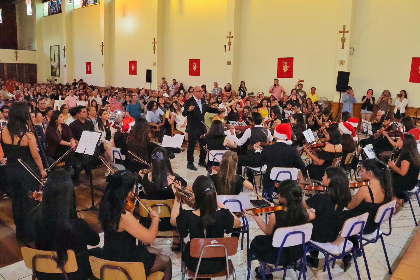 Bajo la dirección del maestro Sergio Alvarado, los talentosos músicos mostraron todo su virtuosismo, siendo ovacionados por el público que repletó el recinto católico de la avenida O’Higgins.