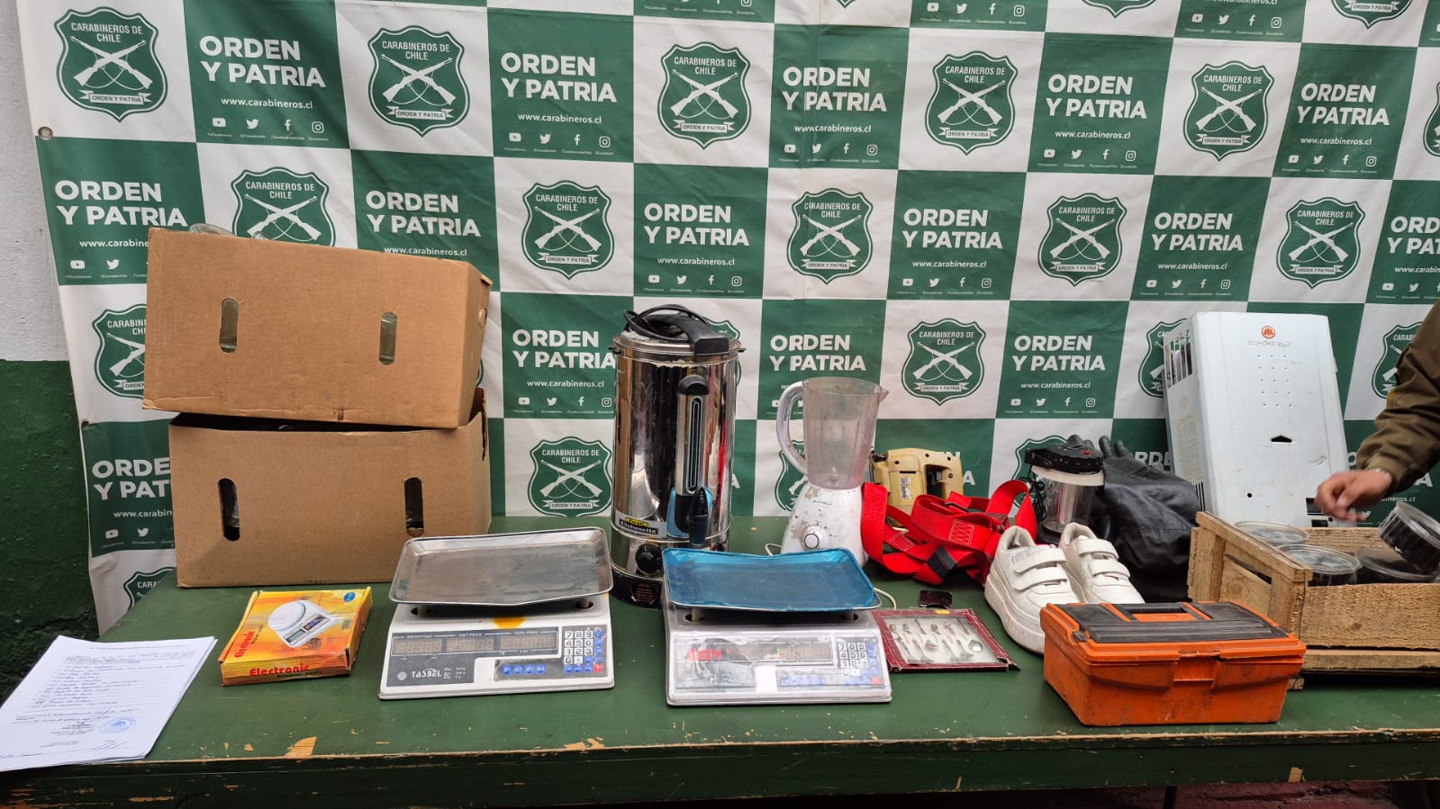 Entre los objetos recuperados se encuentran un termo, tres balanzas electrónicas, herramientas, un calefont e implementos pertenecientes a las funcionarias de la cocina del establecimiento. Cabe destacar que todos estos materiales ya fueron devueltos al colegio.