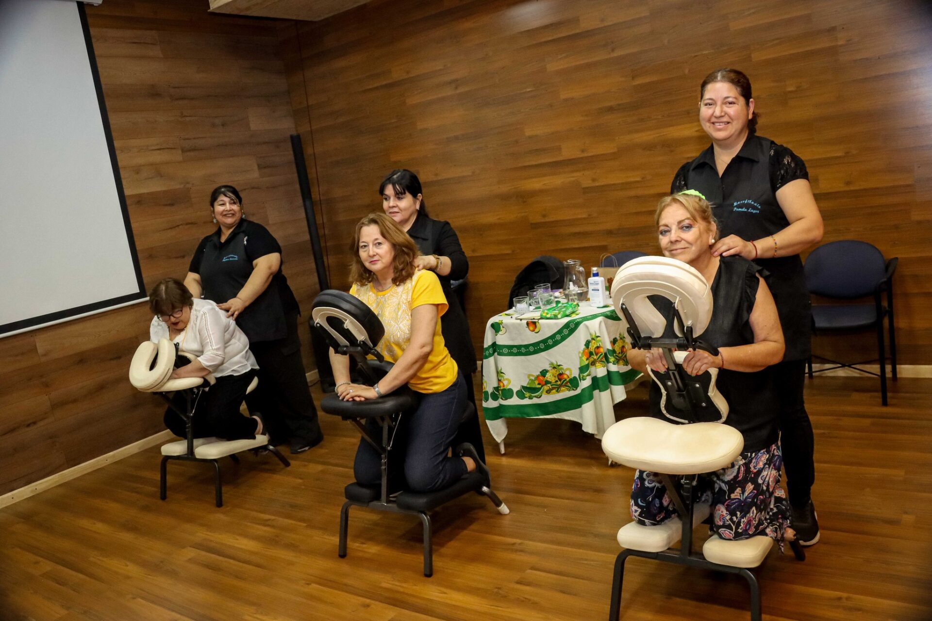 Los participantes se trasladaron gratuitamente hasta la comuna de Doñihue, donde disfrutaron de una completa jornada recreativa que incluyó juegos de mesa, masajes de relajación, sesiones de zumba y baile entretenido, además del acceso a dos piscinas y un stand de libros.