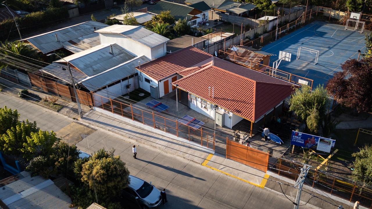 El proyecto consideró, además, el mejoramiento de los servicios higiénicos y camarines existentes, junto con la intervención del entorno de la sede, incorporando áreas verdes, mobiliario urbano e iluminación. Asimismo, el recinto cuenta con conexión a redes de alcantarillado, agua potable, electricidad y gas, y cumple con la normativa de accesibilidad universal, garantizando un espacio seguro, funcional e inclusivo para el desarrollo de actividades comunitarias.